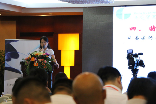 本屆年會報告會主題為“生態(tài)環(huán)保 效率優(yōu)先”, 技術(shù)部研發(fā)經(jīng)理胡歡鳥代表高寶化工為大會作題為“一種特殊結(jié)構(gòu)防染粉在服裝水洗中的應(yīng)用”報告。本次展會我們重點推介來了蓬松平滑整理劑HS-606和尼龍嵌段硅油兩個重點產(chǎn)品,吸引了廣大參展客戶咨詢洽談。